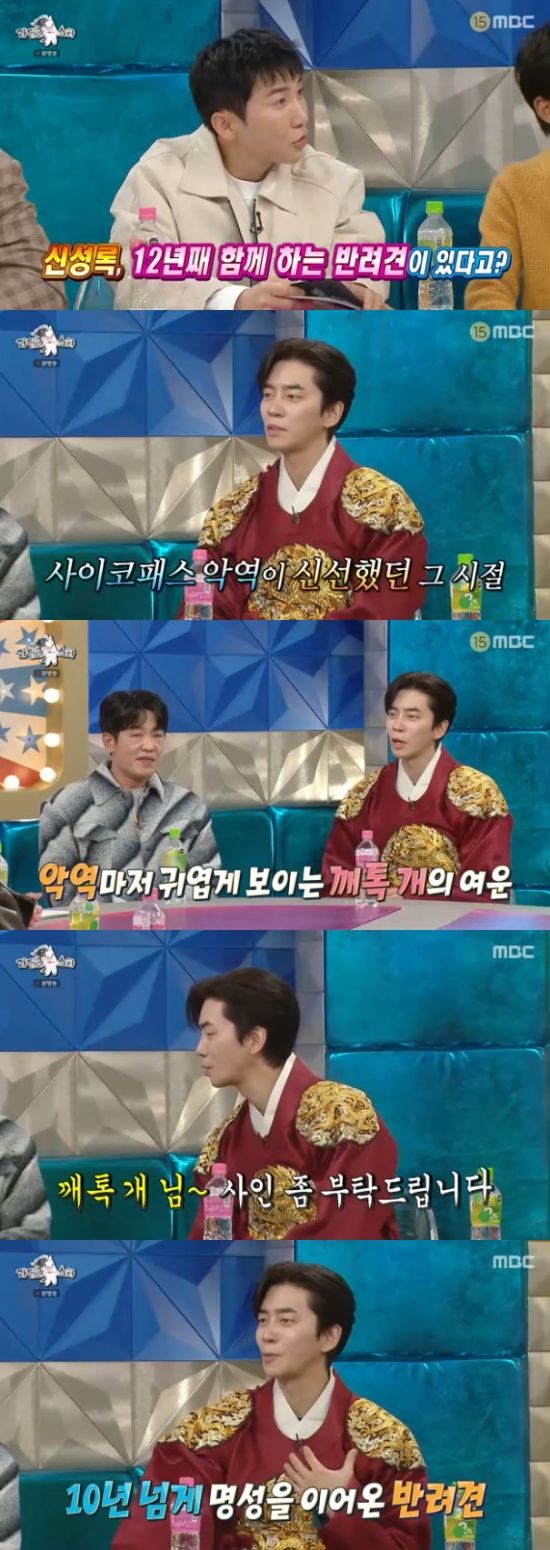 특히 신성록은 "'별에서 온 그대' 때 사이코패스 악역이 이슈가 됐다. 그때 어떤 분이 '카톡개를 닮았다'고 글을 올리셨다. 그러다 말 줄 알았는데, 최근에 저한테 '카톡개 님, 사인 좀 해주세요'라고 하더라. 10년이 넘어도 적응이 안된다"고 했다.