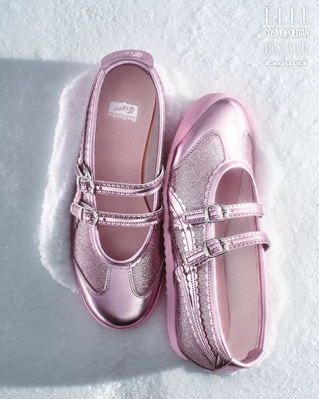 메탈릭 레더 소재와 글리터 디테일로 연말 룩에 세련된 포인트가 되어줄 홀리데이 리미티드 에디션. 핑크 컬러의 멕시코 66 TGRS 스니커즈는 23만원 ONITSUKA TIGER.