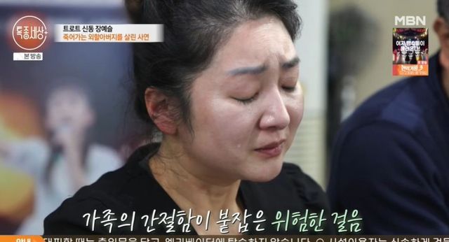 하지만 이를 안 할머니는 “본인이 환자인데 뭐 하는 거야”라며 “패혈증 오면 이제 못 살아. 아들이 간 준 것도 소용없어”라고 걱정했다. 딸은 “시장에도 파는데 굳이 험난한 산에 가서 캐 오는 거냐”라며 눈물을 흘렸고, 사위는 “저희가 처남 얼굴을 어떻게 보겠냐”라고 밝혔다.