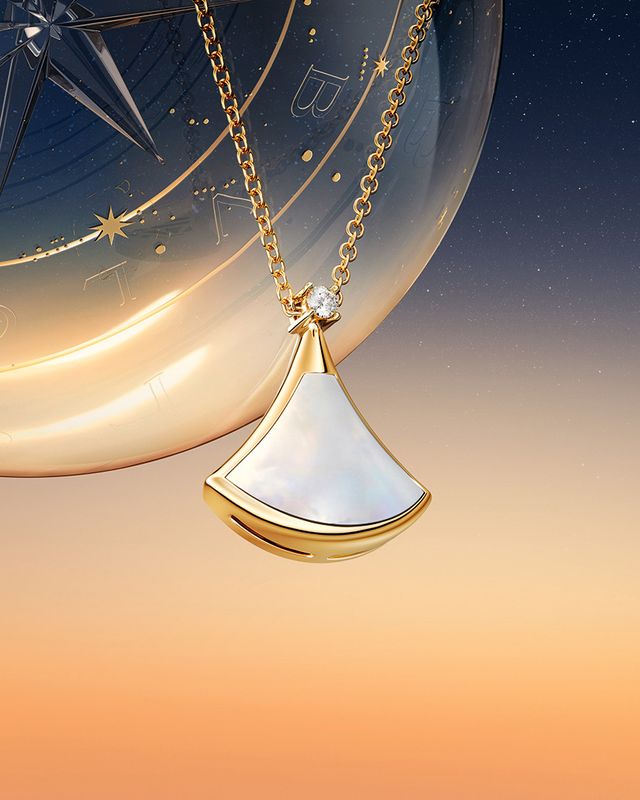 옐로 골드에 머더오브펄, 다이아몬드를 세팅한 디바스 드림 네크리스.