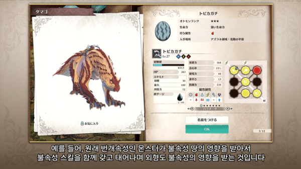 높은 생태 랭크를 가진 구역에서는 보다 높은 알 입수 확률로 특별한 스킬 및 유전자를 지닌 동료몬을 만날 수 있다. 또한, 기본 몬스터 속성과 구역 속성을 함께 보유하고 있는 ‘쌍속성’ 몬스터까지 등장한다. 영상 말미에는 ‘몬스터 헌터 와일즈’의 간판으로 활약한 ‘알슈베르도’의 존재도 소개됐다.