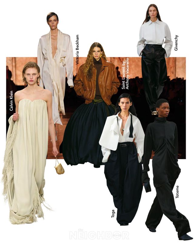 ‘빈 수레가 요란하다’는 나의 신념 같은 문장은 패션에 대입해보아도 어김없는 진리다. 어떻게든 자신을 드러내고자 애쓴 스타일보다 차분하고 담백하지만 힘 있는 룩을 선호한다. 연말 모임이라고 크게 달라질 건 없다. 자연스럽지만 우아한 긴장감이 더해진 실루엣이면 충분하다. 프렌치 쿠튀리에 특유의 완벽에 가까운 테일러링으로 보는 순간 묘한 쾌감마저 느껴지는 지방시의 화이트 셔츠 룩, 턱시도 디테일을 차용한 토가의 모노톤 팬츠 룩과 같이 은근한 포멀함을 가미한 스타일은 격식을 차려야 하는 디너 자리에서 빛을 발한다. 조금 더 드레시한 무드가 필요하다면 캘빈 클라인, 빅토리아 베컴에서 선보인 것처럼 보디라인을 따라 유연하게 흘러 내리는 드레스를 입고 싶다. 장식적 디테일이나 군더더기 없는 극도로 정제된 디자인에 약간은 여유로운 실루엣으로 연출하고, 주얼리도 최소화하는 것이 포인트. 스킨 톤에 어울리는 컬러와 롱앤린 실루엣만으로 충분히 설명 가능한 스타일이다. 마지막으로 캐주얼한 파티 자리라면 안토니 바카렐로의 제안처럼 투박한 가죽 재킷에 사랑스러운 플레어 스커트를 매치해 상반된 아이템의 믹스매치가 주는 쿨한 애티튜드를 즐기고 싶다.