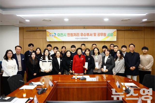 (뉴스영 이현정 기자) 이천시는 10일 시청 중회의실에서 '2025년 4분기 민원처리 우수부서(공무원) 시상식 및 간담회'를 개최하고, 민원 서비스 향상에 기여한 우수 부서와 공무원 17명에게 상장과 시상금을 전달했다고 밝혔다.