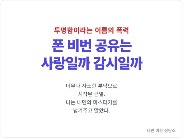 The post 핸드폰 비밀번호 공유 요구, 신뢰의 증명이 아니라 디지털 감시의 시작 appeared first on 나만 아는 상담소.