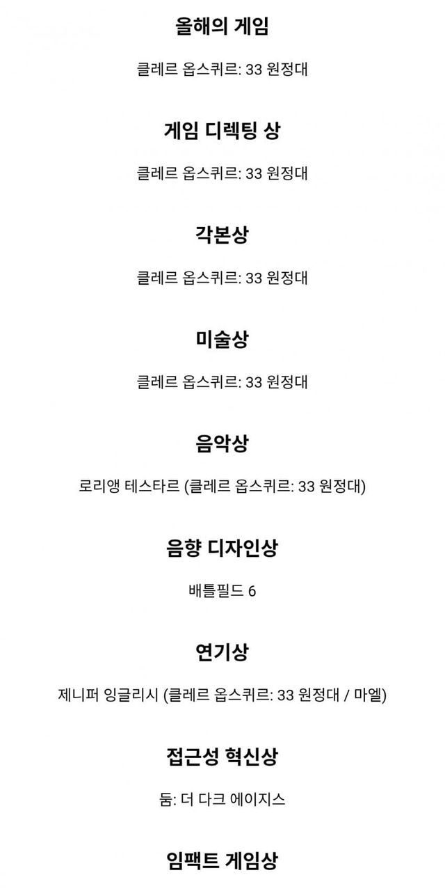 최고의 게임 디렉팅 상 - 클레르 옵스퀴르: 33 원정대