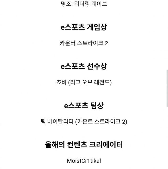 올해의 컨텐츠 크리에이터 상 - 모이스트크리티컬