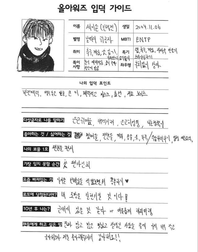 제이든 - 제가 말을 좀 안 듣죠. 하고 싶은 걸 꼭 해야하는 마이웨이의 면모가 있어요. 건호 형이 금쪽이라고 불러요.