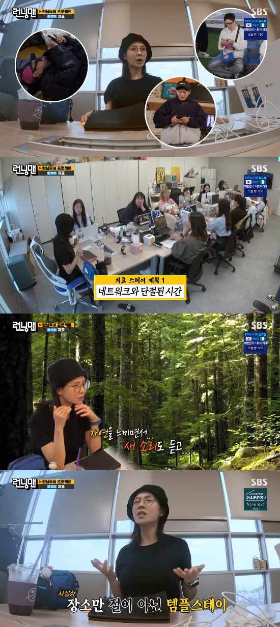 송지효는 제작진에게 "콘셉트는 휴식이다. 멤버들이 항상 휴식 때 핸드폰만 본다. 특히 하하-석진-종국오빠가 그렇다. 네트워크와 단절된 시간을 가지면 좋겠다 싶었다. 저는 핸드폰도 안해도 되고 밥도 안 먹어도 된다. 자연을 느끼면서 새소리도 듣고, 나무도 보고, 너무 괜찮을 것 같다"고 했다.