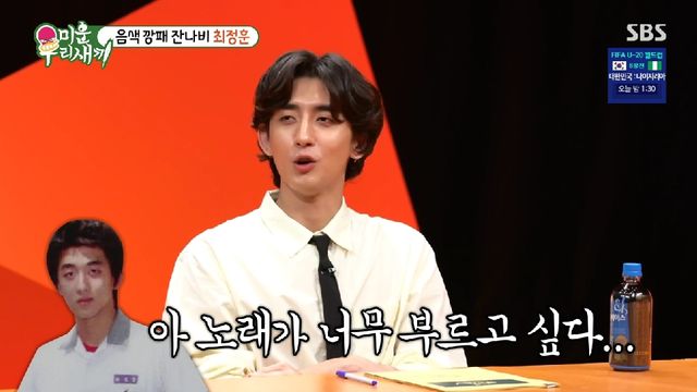 이어 최정훈은 "수학여행 4~5일 전에 축구 하다가 팔이 부러졌다. 깁스를 차고 있는데 가서 노래가 너무 부르고 싶었다. 어머니한테 '나 가야겠다'고 했다"라고 일화를 공개했다. 그러자 서장훈은 "좋아하는 친구가 있었냐"고 추측했다. 최정훈이 "맞다"고 인정하다 서장훈은 "남자 학교였으면 안 갔을 거다"라며 웃었다.