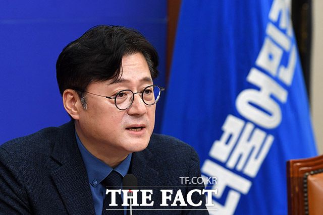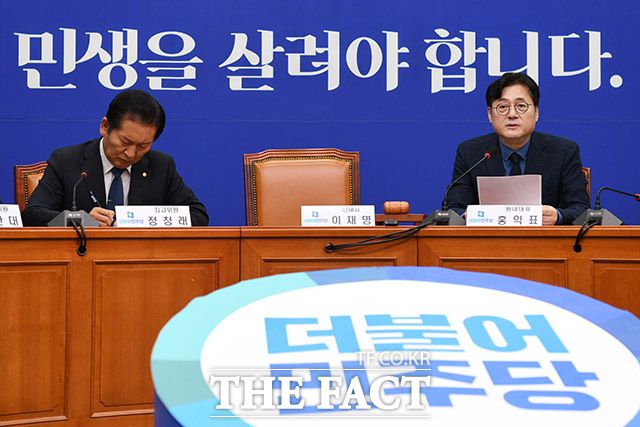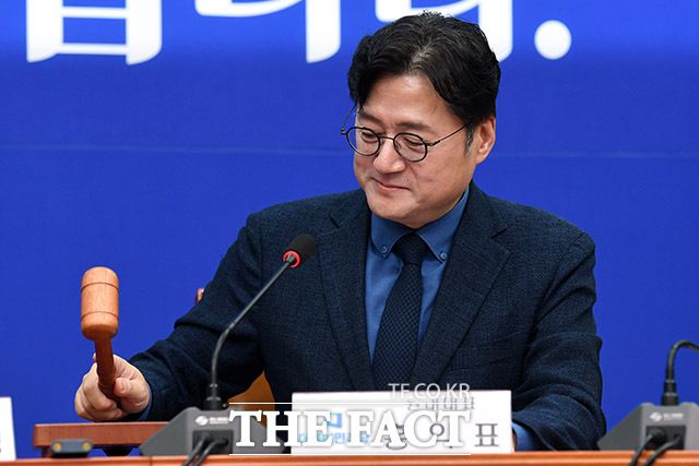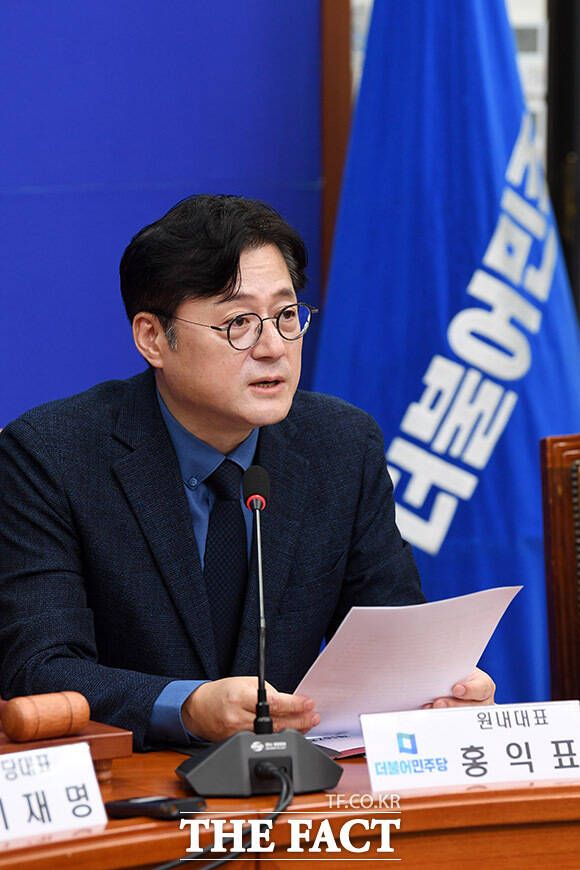 홍익표 더불어민주당 원내대표가 27일 오전 서울 여의도 국회에서 열린 최고위원회의에서 발언을 하고 있다. /국회=남용희 기자