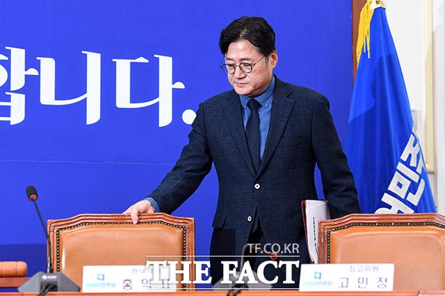 [더팩트ㅣ국회=남용희 기자] 홍익표 더불어민주당 원내대표가 27일 오전 서울 여의도 국회에서 열린 최고위원회의에서 발언을 하고 있다.