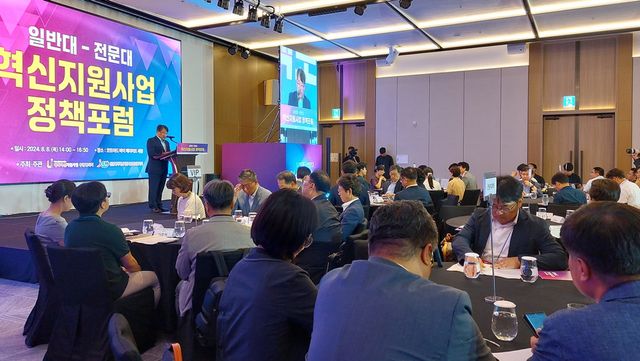 8일 대학혁신지원사업총괄협의회와 전문대학혁신지원사업발전협의회는 코드야드 바이 메리어트 세종 그랜드 볼룸홀에서 ‘일반대-전문대 혁신지원사업 정책포럼’를 개최했다. 정책포럼은 전국 일반대·전문대 혁신지원사업 책임자들이 혁신지원사업 성과를 공유하고 대학의 자율혁신을 실현하기 위한 향후 정책 방안을 모색하기 위해 마련됐으며 교육부 및 기재부 관계자, 대학혁신지원사업총괄협의회와 전문대학혁신지원사업발전협의회 임원진·자문위원, 일반대·전문대 총장단 등 150여 명이 참석해 열띤 토론을 벌였다. 특히 이들은 대학이 자체적인 특성화 계획과 발전 방향을 수립하고, 자율 혁신을 위한 안정적인 재원확보 방안에 대해 심도있게 논의했다.