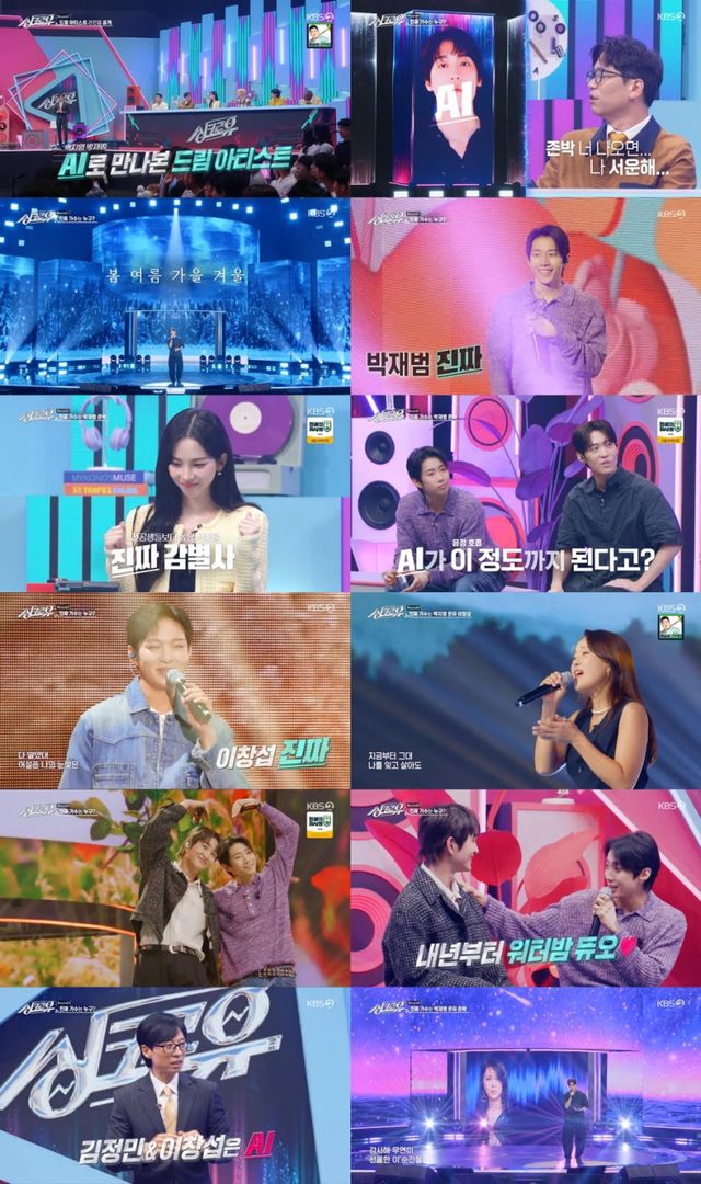 KBS2 예능프로그램 ‘싱크로유’에 백지영, 존박, 박재범, 온유, 이창섭 등 역대 최다 드림아티스트가 등판해 놀라움을 샀다. 박재범과 온유의 ‘가끔’이 진짜, 김정민과 이창섭의 ‘Welcome to the Show’가 AI, 백지영과 존박의 ‘그대네요’가 존박만 진짜로 밝혀져 감탄을 자아냈다