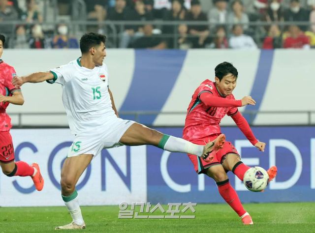 홍명보 감독이 이끄는 한국은 15일 오후 8시 용인미르스타디움에서 열린 이라크와의 2026 국제축구연맹(FIFA) 북중미 월드컵 아시아 3차 예선 B조 4차전에서 3-2로 이겼다. 한국은 오세훈의 선제골, 이후 실점을 내준 뒤엔 오현규와 이재성의 추가 득점을 묶어 리드를 잡았다. 추가시간에 추격 골을 내줬으나, 승패에 영향은 없었다. 한국은 이날 승리로 3차 예선 3연승을 질주했다. B조 1위(승점 10)를 더욱 굳건히 한 한국이다.