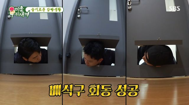 독방 일정의 하나인 108배까지 무사히 마친 세 사람. 얼마 뒤 바깥에서 똑똑 소리와 함께 식사가 주어졌고, 셰이크·사과·고구마로 구성된 소박한 식단에 “이게 끝이냐”며 볼멘소리를 했다. 반면, 운동을 위해 수십년째 식단 관리 중인 김종국은 “완전 건강식”이라며 미소를 지어 웃음을 자아냈다.