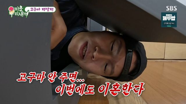 접전 끝 최후의 승자는 김종국. 하지만 약속대로 흔쾌히 고구마를 넘긴 김승수와 달리 김준호는 고구마 주기를 미적거렸다. 그러자 김종국은 “형, 고구마 안 주면 이번에도 이혼한다”고 악담했고, 김준호는 “그게 할 소리냐 이 자식아”라며 발끈했다.