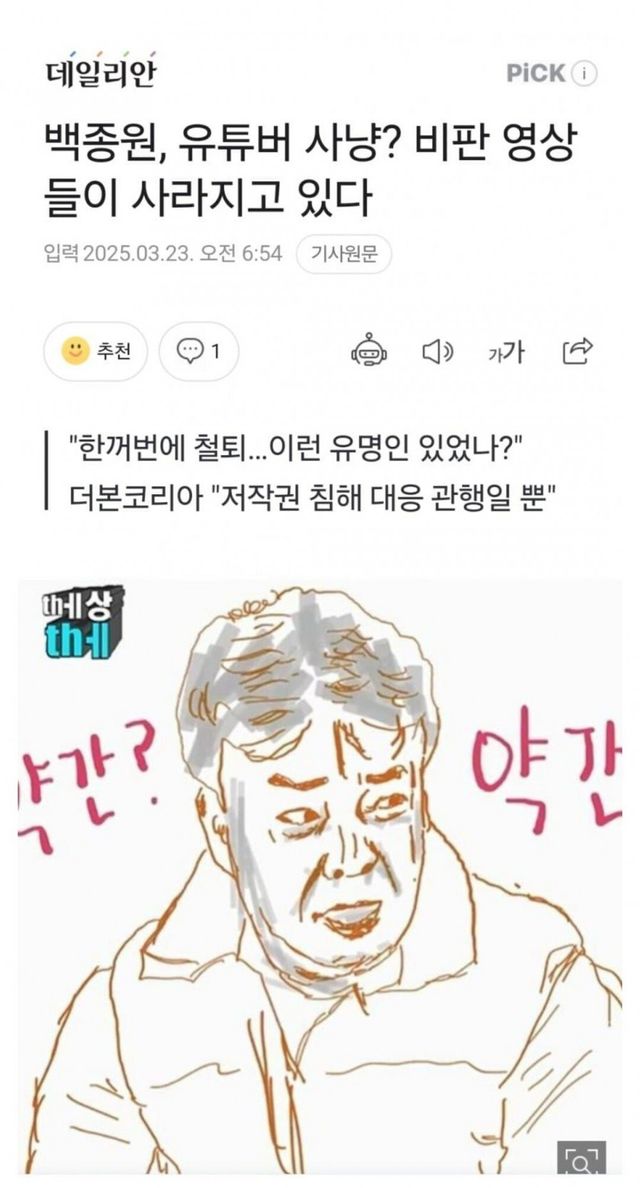 백종원 유튜브의 영상이 노출 되었다는 이유로