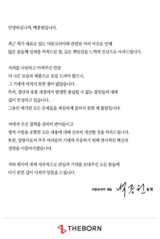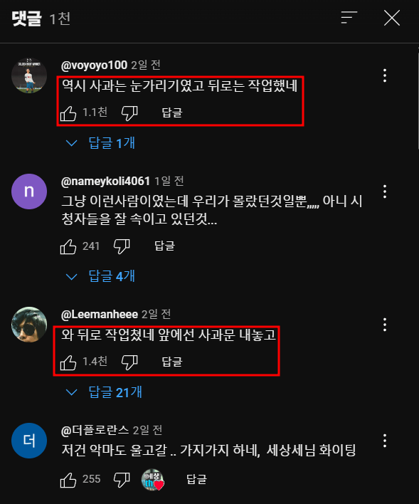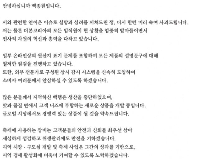앞에서는 논란과 형사입건 등으로 인해 사과를 했지만