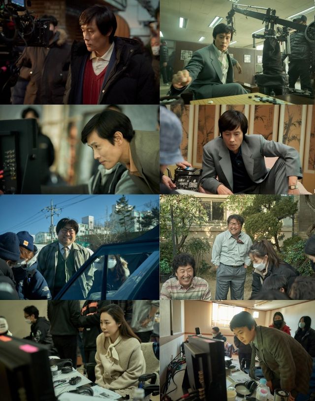 공개된 스틸은 '승부'에서 명연기를 보여 주었던 배우들의 생동감 넘치는 촬영 현장 모습을 담고 있어 관객들의 시선을 사로잡는다. 이병헌, 고창석, 현봉식, 문정희, 조우진까지 배우들이 카메라 밖에서도 진지한 눈빛으로 자신의 연기를 모니터링하며, 명배우다운 카리스마와 진심 어린 열정을 드러내는 모습이 인상적이다.