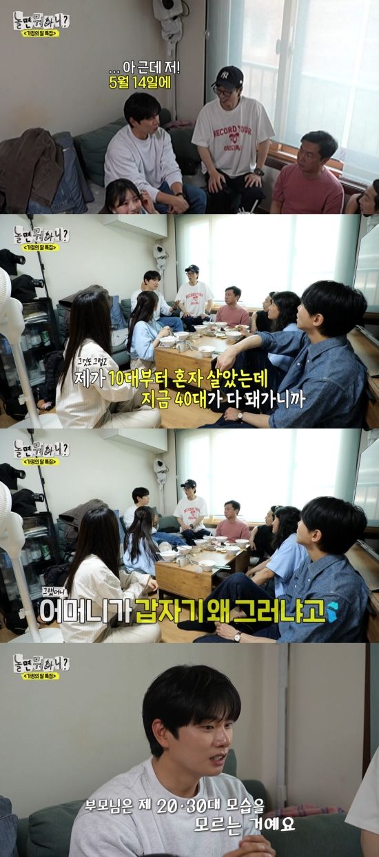 10일 방송된 MBC '놀면 뭐하니?'에서는 '가정의 달 특집으로 배우 박광재의 집을 찾는 모습이 그려졌다.