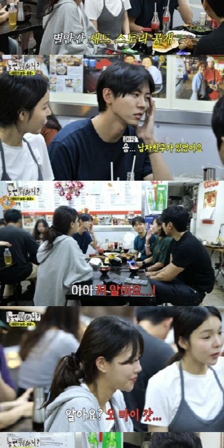 3살 연하 축구 선수 송범근과 공개열애했지만 결별을 알렸던 이미주는 “그는 갔다(He’s gone)”라고 별안간 고백을 했다. 주우재는 "남자친구가 있었다"라며 거들었다.