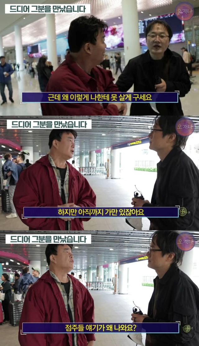 이후 김재환PD는 '장사천재' 프랑스 촬영 후 입국하는 백종원을 공항에서 직접 만났고, 백종원은 "왜 이렇게 나한테 못살게 구세요. 감독님 저하고 악연 있으세요? 왜 그러세요?"라며 "저도 억울한 게 되게 많다. 하지만 아직까지 가만히 있지 않냐"고 토로했다.