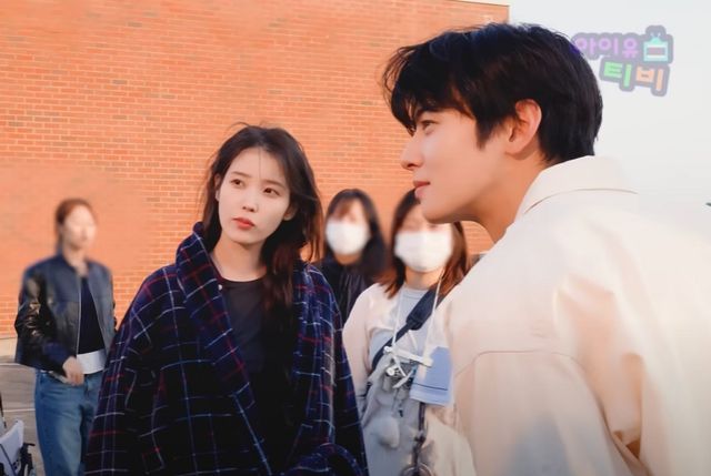 아이유는 “모두 만장일치로 차은우가 적임자라는 결론이 났다”며 차은우에 대한 신뢰를 드러냈다. 촬영 현장에서 두 사람은 어색한 인사를 나눈 뒤 서로 안부를 묻고 자연스러운 대화를 나누며 친근한 모습을 보였다. 차은우가 “잘 지냈냐”고 묻자, 아이유는 “바빴다”고 답했다. 차은우는 무거운 탈의 무게에 놀라움을 표하기도 했다.