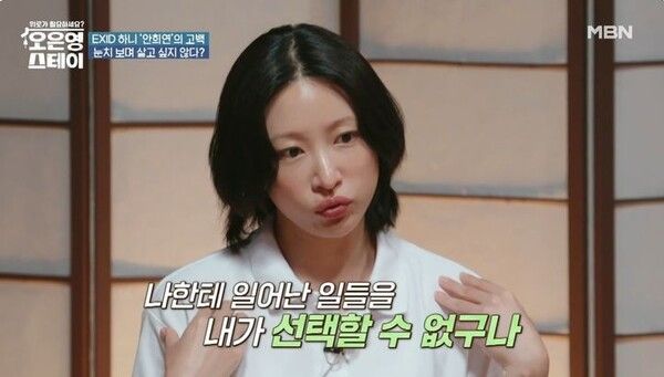 뉴시스 보도에 따르면, 7일 오후 방송된 MBN 예능 프로그램 '오은영 스테이'에선 하니가 참가자로 출연했다.