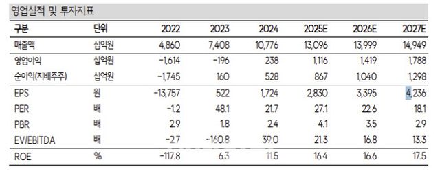 한 연구원은 “현재까지 약 27억 5000만달러 규모를 수주하면서 경쟁사 대비 다소 약한 수주 실적 기록하고있으나 다수의 컨선 및 탱커 계약을 두고 협상 중인 것으로 파악되며, 올해 하반기 혹은 늦어도 내년 상반기부터 발주가 본격화될 것으로 예상되는 북미 LNGC 수주를 통해 2028년 이후의 실적 개선세는 충분히 유지할 것으로 전망한다”고 내다봤다.