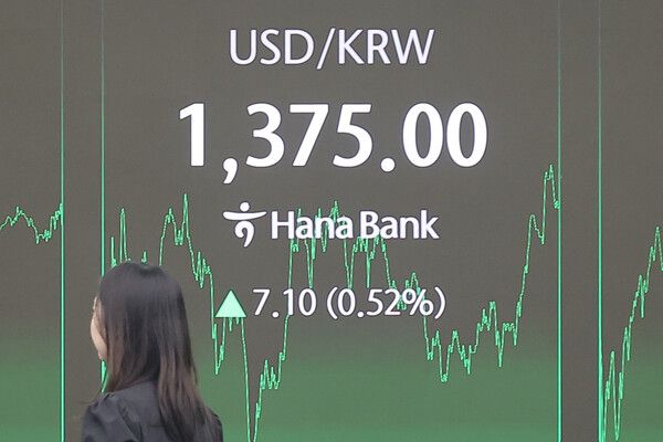 이날 서울 외환시장에서 미국 달러화 대비 원화 환율의 주간 거래 종가(오후 3시 30분 기준)는 전날보다 7.1원 오른 1375.0원이었다.