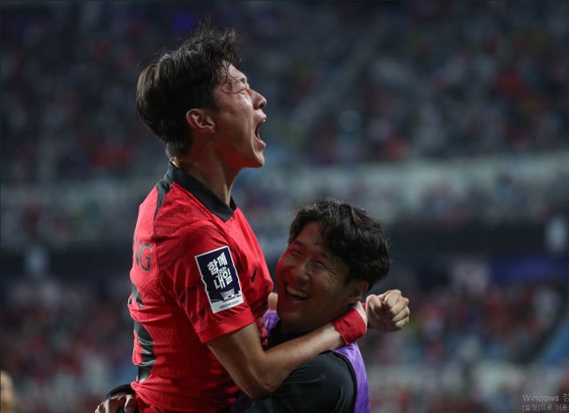 손흥민과 포옹하는 황의조 / 뉴스1