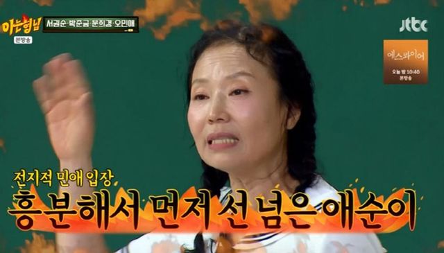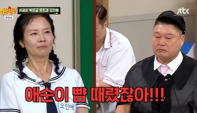 문희경도 “뺨 때리는 것도 노하우가 있다. 어떤 배우들은 직접 때려달라고 부탁한다”며 오민애를 감쌌다. 이에 서장훈이 “민애는 제대로 때린 거지?”라고 재차 확인하자 오민애는 “애순이가 부탁했다”고 답해 출연진을 놀라게 했다.