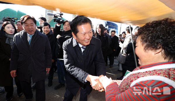 최고위 이후에는 현지 시장 등을 돌며 민심 청취에 나섰다. 정 대표는 전북 전주남부시장을 찾아 "전주가 많은 어려움을 겪고 있고, 그런 상징적인 장소가 이곳 남부시장"이라고 했다.