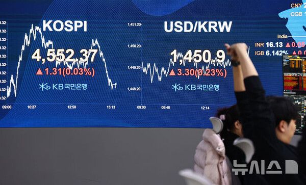 뉴시스 보도에 따르면, 8일 서울외환시장에서 원·달러 환율은 전날보다 4.8원 오른 1450.6원에 마감했다. 종가 기준 지난해 12월 23일(1483.6원) 이후 최고치다. 이날 환율은 장 중반까지 1440원대에서 버텼으나, 마감 직전 매수세가 몰리며 1450원을 뚫고 올라갔다. 장중 최고가는 1451.8원이다.