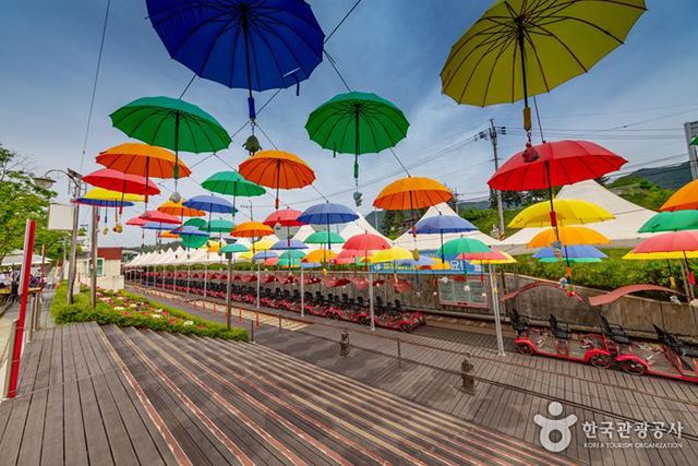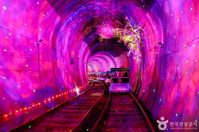 특히 레일바이크 구간으로 각기 다른 4개 테마의 터널을 지나게 되는데, 바람개비 터널-해피버블 터널-우주 터널-VR 체험 터널로 조명 쇼를 감상할 수 있어 단순히 풍경을 바라보는 라이딩과 달리 지루할 틈이 없다. 자전거처럼 페달을 밟는 방식이지만 코스 대부분이 완만한 내리막이라 체력 부담이 크지 않다.