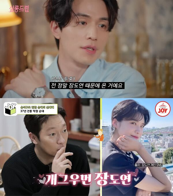 또한 이동욱은 지인 '톱10'에 장도연을 꼽으며 "무조건 장도연은 들어간다. 늘 마음 한켠에 생각한다. 어깨 근육이 파열돼서 앉아있기 힘든데, 여기 나와서 떠들고 있는 건 다 장도연을 향한 마음"이라는 플러팅으로 그녀를 설레게 했다.