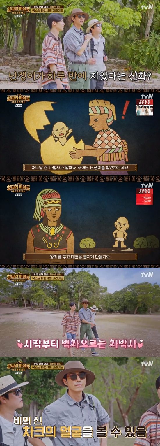 마야즈는 마야의 신화를 탐구하기 위해 유적지 욱스말을 탐험하게 됐다. 목적지를 들은 차승원은 "난쟁이가 하루 만에 지은 도시다. 가 보면 알겠지만 가로로 길게 된 건물이 있다. 가서 얘기해 주겠다"고 지식을 방출했다.