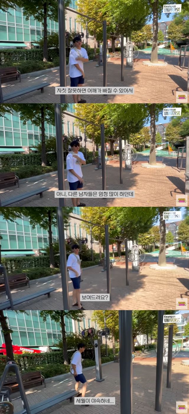 이에 김승현은 "턱걸이는 자칫 잘못하면 어깨가 빠질 수 있어서 무리할 필요 없다"고 답했다.