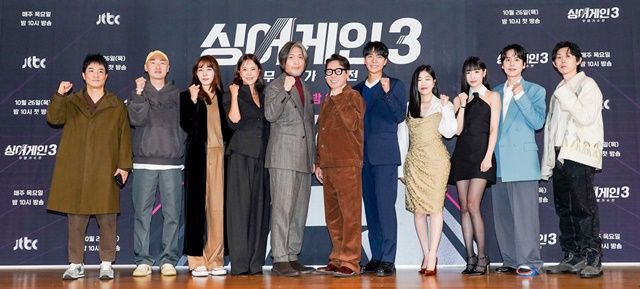 JTBC 새 예능프로그램 '싱어게인 시즌3-무명가수전'(이하 '싱어게인3') 제작발표회가 26일 오전 서울 마포구 중소기업DMC타워에서 열렸다. 현장에는 윤현준 CP와 심우진 PD를 비롯해 가수 이승기 윤종신 임재범 백지영 규현 이해리 선미 코드 쿤스트 그리고 작사가 김이나가 참석했다.