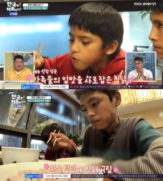 삼부자는 첫 한국 음식에 감탄했다, 포르피는 "한국 음식은 다르다. 맛있고 좋다"며 인증샷을 남겼다.