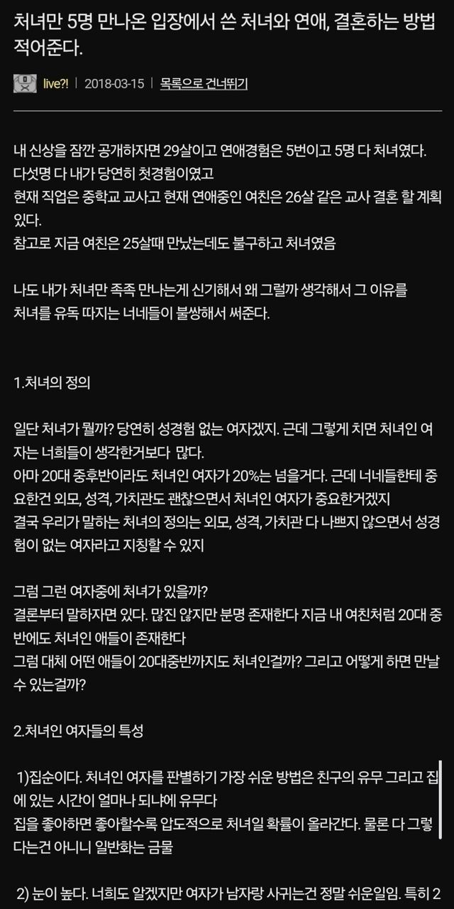 처녀만 5명 만났다는 남자