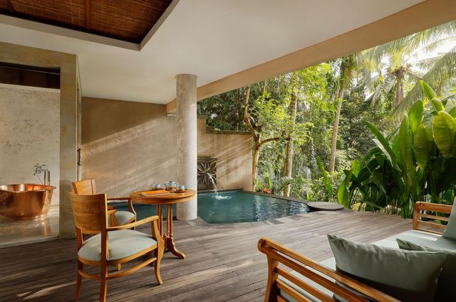 총 28개 객실은 여섯 가지 타입으로 나뉘며 모두 발리 전통 미학과 현대적 편의성을 고루 갖추고 있다. 대표 객실인 리버 스위트는 90㎡ 규모로 가장 많은 객실을 보유하고 있으며 발리의 울창한 자연을 조망할 수 있다. 밸리 스위트는 한층 더 프라이빗한 경관과 넉넉한 공간이 특징이며 동일 면적의 밸리 스위트 풀은 전용 수영장이 더해져 프라이빗한 휴식이 가능하다.