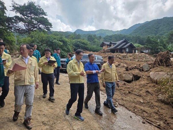 뉴시스 보도에 따르면, 이날 지방시대위원장은 산청읍 내리마을을 방문하여 산사태에 흘러내린 토사 현장을 둘러보는 등 현황을 정취했다.