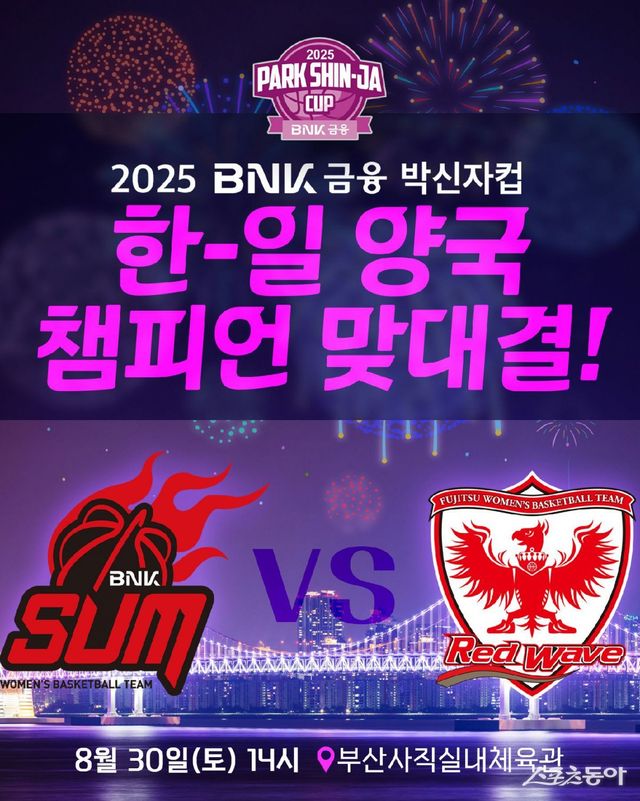 개막전은 8월 30일 오후 2시 BNK 썸과 후지쯔의 맞대결로 확정됐다. 2024~2025시즌 WKBL 챔피언결정전 우승팀 BNK 썸과 2024~2025시즌 일본 W리그 통합 우승팀 후지쯔가 박신자컵의 시작을 알린다.