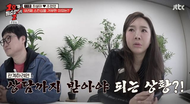 최설아는 "우리 1년 반만 더 있으면 관계 안 한지 10주년이다"라고 했고, 조현민은 "9년 동안 이렇게 관계 없는 게 정상이냐"고 토로했다.