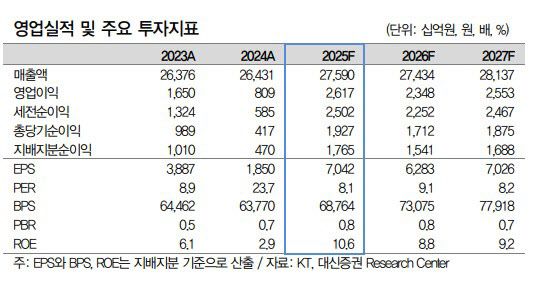그러면서 “현재 형성 중인 5만 7000원대 주가는 지난 2002년 8월 민영 KT 출범 후 최고가”라며 “2021년부터 매년 플러스 수익률 달성 중이고 2021년과 2022년, 2024년은 지수 아웃퍼폼을 실현했다”고 했다.