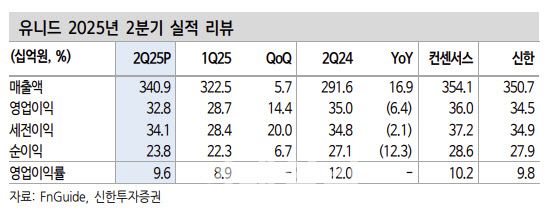 김명주 신한투자증권 연구원은 “유니드의 2분기 영업이익은 328억원으로 전 분기 대비 14.4% 증가했지만, 시장 기대치(345억원)는 하회했다”며 “급격한 환율 하락(1분기 1451원→2분기 1404원)과 운임 상승 영향이다”고 설명했다.