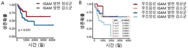 분석 결과, 푸조박테리아 양성 환자에서 면역세포의 분화 상태가 음성 환자와 다르게 나타나는 것을 확인했다. 양성 환자에서 푸조박테리아는 종양과 관련한 대식세포와 상호작용을 방해해 면역글로불린A(IgA) 형질세포의 발달과 분비형 IgA(sIgA) 생성을 저해하는 것으로 나타났다. IgA의 성숙도가 높을수록 암의 예후가 좋았던 반면, 푸조박테리아 양성 대장암에서 IgA의 성숙도가 낮을수록 예후가 특히 좋지 않았다.