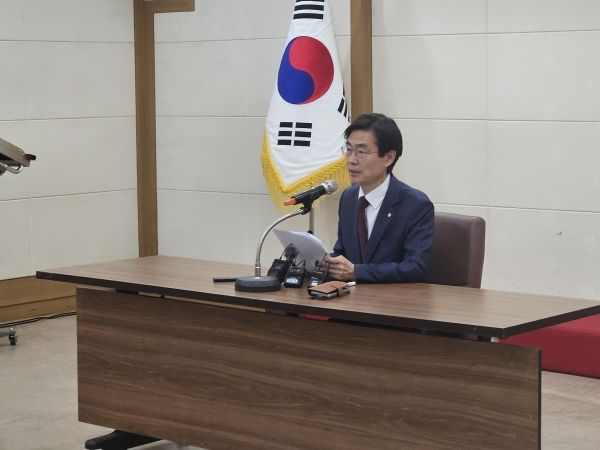 | 국민의힘 조경태 의원이 22일 대구시의회에서 당대표 출마 기자회견을 하고 있다. [사진=포커스데일리] |