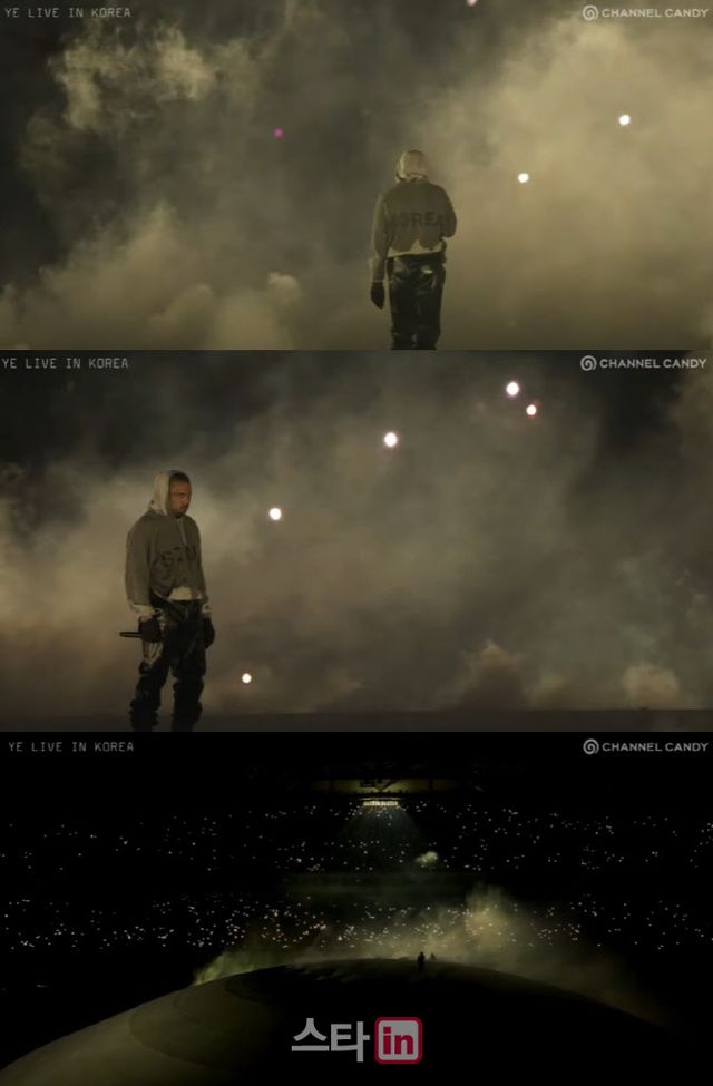 등판에 ‘코리아’(KOREA)를 새긴 후드티를 입고 등장해 한국 팬들을 향한 애정을 드러낸 그는 ‘파워’(Power)로 공연 포문을 연 뒤 ‘캔트 텔 미 나씽’(Can’t Tell Me Nothing), ‘니가스 인 파리스’(Ni**as in Paris), ‘세이 유 윌’(Say You Will), ‘바운드 2’(Bound 2), ‘하트리스’(Heartless) 등으로 무대를 이어갔다.